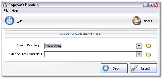 list boxes on the main BreakIn window and you think they should be, you may want to check whether those source files reside in your Clarion directory.