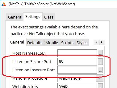 where on the site the user was. Through NetTalk 9 this was accomplished by having 2 Server objects in the WebServer procedure, one set up to listen on