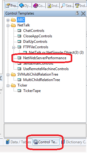 To apply the template, go to the WebServer procedure and make some space available. (Usually this is done by adding a SHEET control, and moving the existing logging controls onto a tab. Then create a second tab and populate the NetWebServer Performance Monitoring CONTROL template from the Control Templates list.