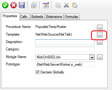 1. Open the procedure properties, and click on the Ellipsis button to the right of the Template field;