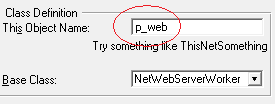 to your WebHandler procedure, has the This Object Name set to p_web rather
