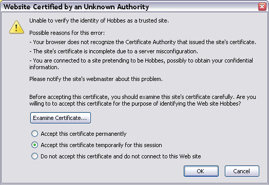 Since this is an unsigned certificate You’ll get a security warning. Click Ok.