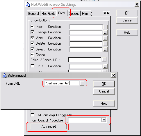 The browse calls a static page, form.htm, instead of the form procedure. Form.htm is also in the web folder. This page has both the form, and the header embedded on it.