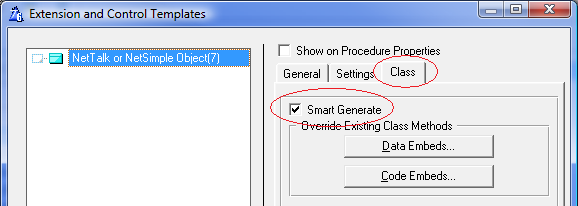 Web Hander procedure, Extensions, NetTalk or NetSimple Object Extension, Class Tab, Smart Generate option.