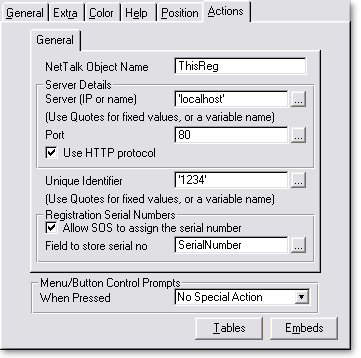 By assigning a value to the field iunique (LONG) at the embed point ?GetActivationFromWeb.Accepted (myRegisterProduct) in the client example, a unique identifier can be created which is send to the server. The value must preferably be a combination of a dataset identifier and or a PC identifier (Registry key entry will do). By keeping the unique identifier in the programs dataset, you will ensure that the number gets carried across during restores etc. By looking at the unique identifier fields, multiple requests for the same dataset, workstation can be monitored. I like using the combination of pc and data identifier – makes it easier to verify if a user is moving data or updating expired codes.