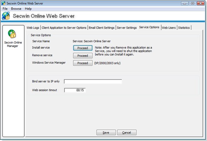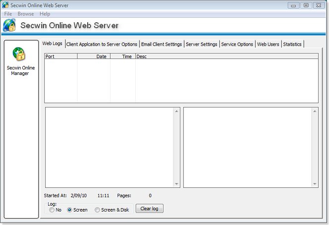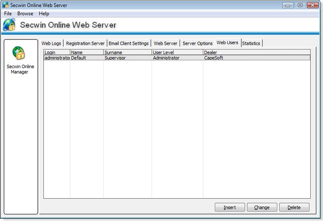 Secwin Online Server's Manager can be access by clicking on the icon on the left white panel of the server: