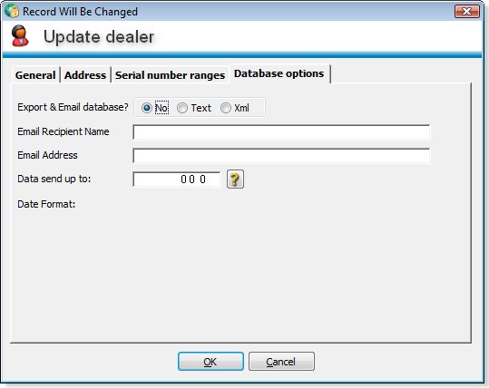 The Data send up to field is a system updated field. This field is updated with the current date once a day just after midnight when the latest data is email to the dealer. Only registrations data newer than this date will be emailed to the dealer. This date can be manually changed.
