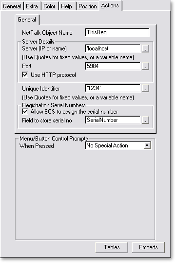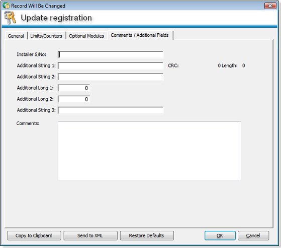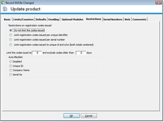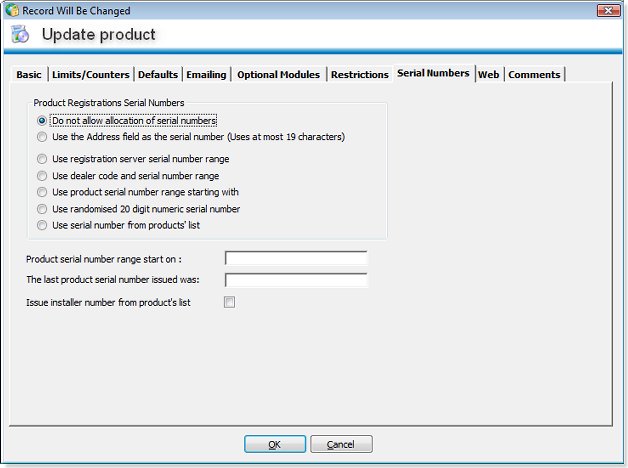 Issuing of serial numbers - When one of the following options are selected and the registration code request is defined as version 3, a registration code with a serial number will be issued. See the example for more details. Serial Numbers Tab
