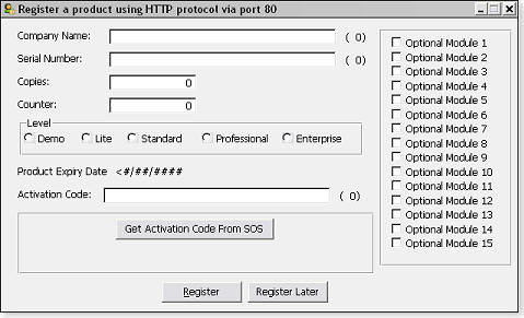 Summary: .This registrations method allows to capture more than jus the customer name and ensures that you can build a contact database for your product from the internet. This will also guarantee by default that the client will be connected to the internet to register.