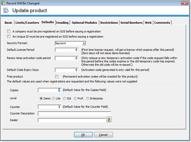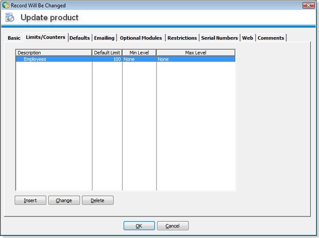On the limits and Counter tab, you may change the value  of you limiter for Secwin 4 products only. The Limits and Counter Descriptions are defined in your product.