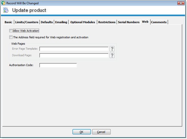 5. Select the option "Allow Web Activation". This option enables Web Page and Activation Mail templates. If none are entered the default shipped will be used or customise your pages from the examples provided.