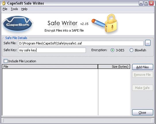 To use CapeSoft Safe Writer to secure and encrypt files, proceed as follows: